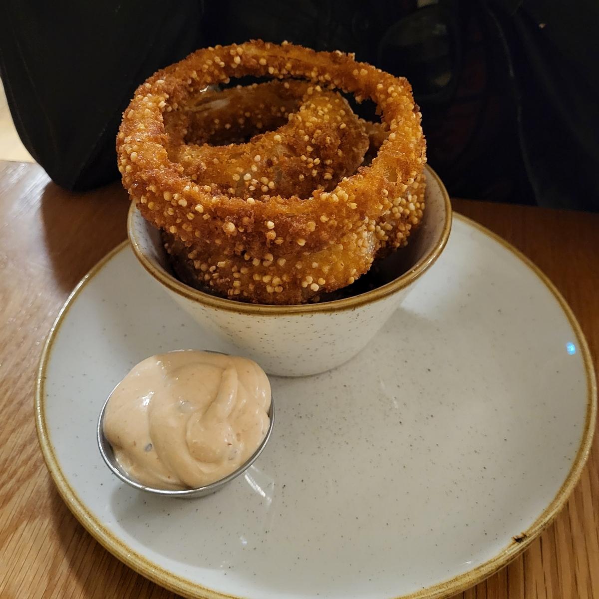 Also ordered this from the happy hour menu which seemed like a more reasonable price for 4-5 onion rings. Huge rings! Good breading. Dip was so good I used it for my fries too.