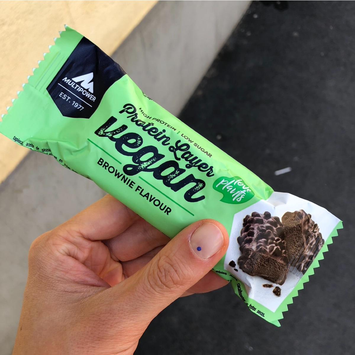 Barretta proteica vegana molto buona al gusto brownie 🍫 con proteine di soia, riso e piselli + cioccolato. Proteine 24% (13 g per barretta). Ottimo prodotto.