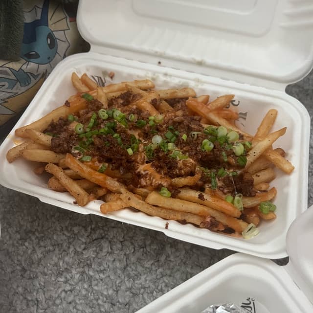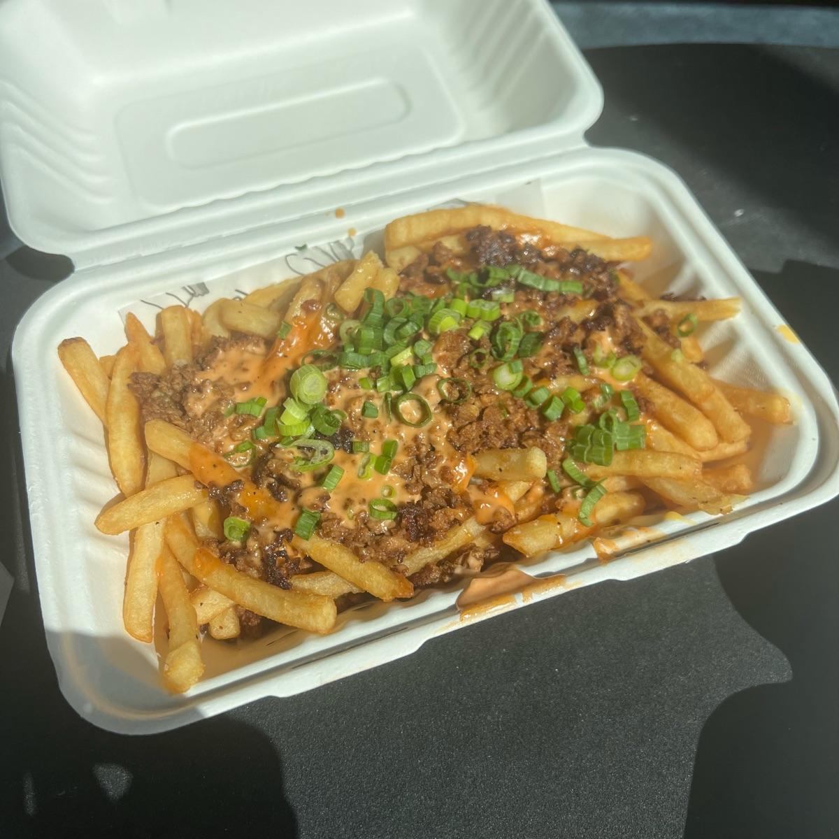 okay.. i haven’t ordered these in a while and it’s been about 6 months since i originally reviewed them so i feel like i can do it again. anyways, i used to be so so about these #veganloadedfries but im kind of becoming a fan… they are still difficult to eat but i just love the #vegangroundbeef , wpbc sauce, and scallions so much 😭