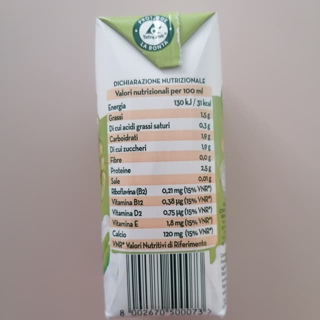 Latte di soia monoporzione per la colazione! Addizionato di calcio e vitamine, sapore molto molto buono!