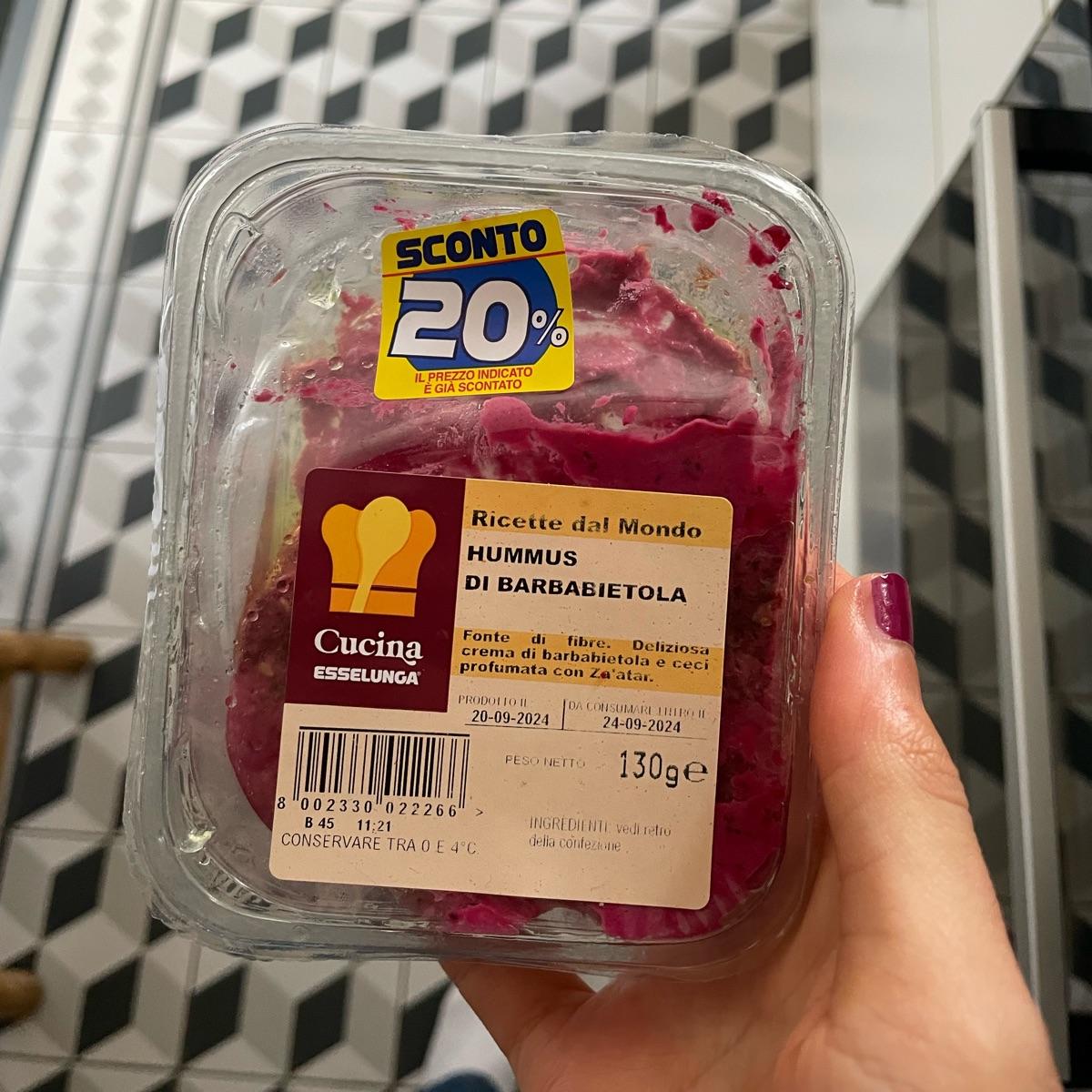 Per cambiare ho comprato questo hummus di barbabietole che si conferma buono specialmente grazie allo zaatar. Lo ricomprerei . L’unica pecca è la confezione in plastica poco sostenibile