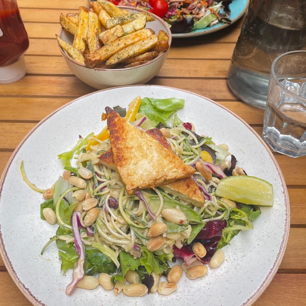 A courgette noodle salad topped with tofu and peanuts. Very fresh and healthy tasting but not one of my favourite dishes I’ve had when eating out lately. The satay sauce was nice but lacking the flavours that would make it more like a pad thai. Let down by the price, as it was almost £15! I understand it’s an independent place but it felt v steep for a salad mostly made up of courgette noodles and lots of leaves #salad #vegansalad #healthy #noodles #padthai #tofu