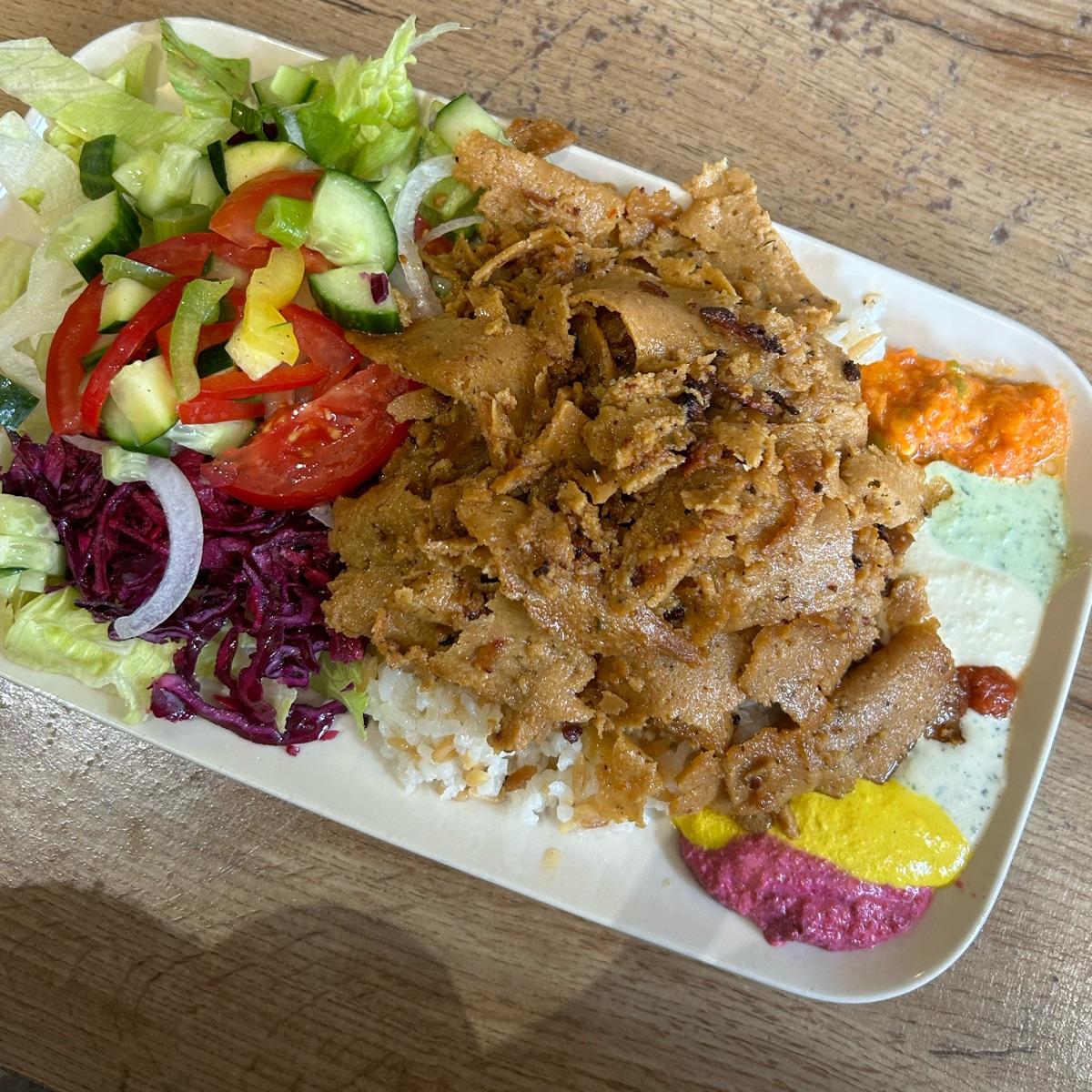 Omg what a plate! Stacked with some of the best #seitandoner I’ve ever had! It was spiced so nicely and had an amazing texture! Underneath was a bed of rice, as well as a salad on the side and like 5 different sauces! This was gosh darn scrumptious. Certainly unhealthy, but oh so satisfying. It was also huge, and I was unable to finish it. At 12.90€, this is a really good deal! #sweetdreamsaremadeofgrease
