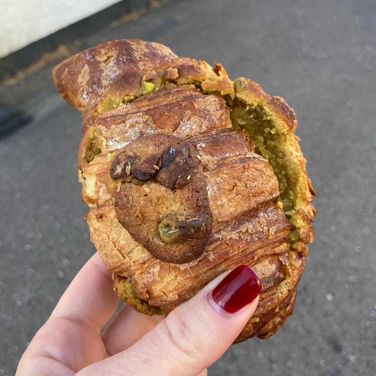 This #pistachio #croissant was good, but a little bit too heavy. The pistachio #croissants we had in Italy were filled with pistachio cream, but this was a sort of paste, which I think does not fit as well🥐