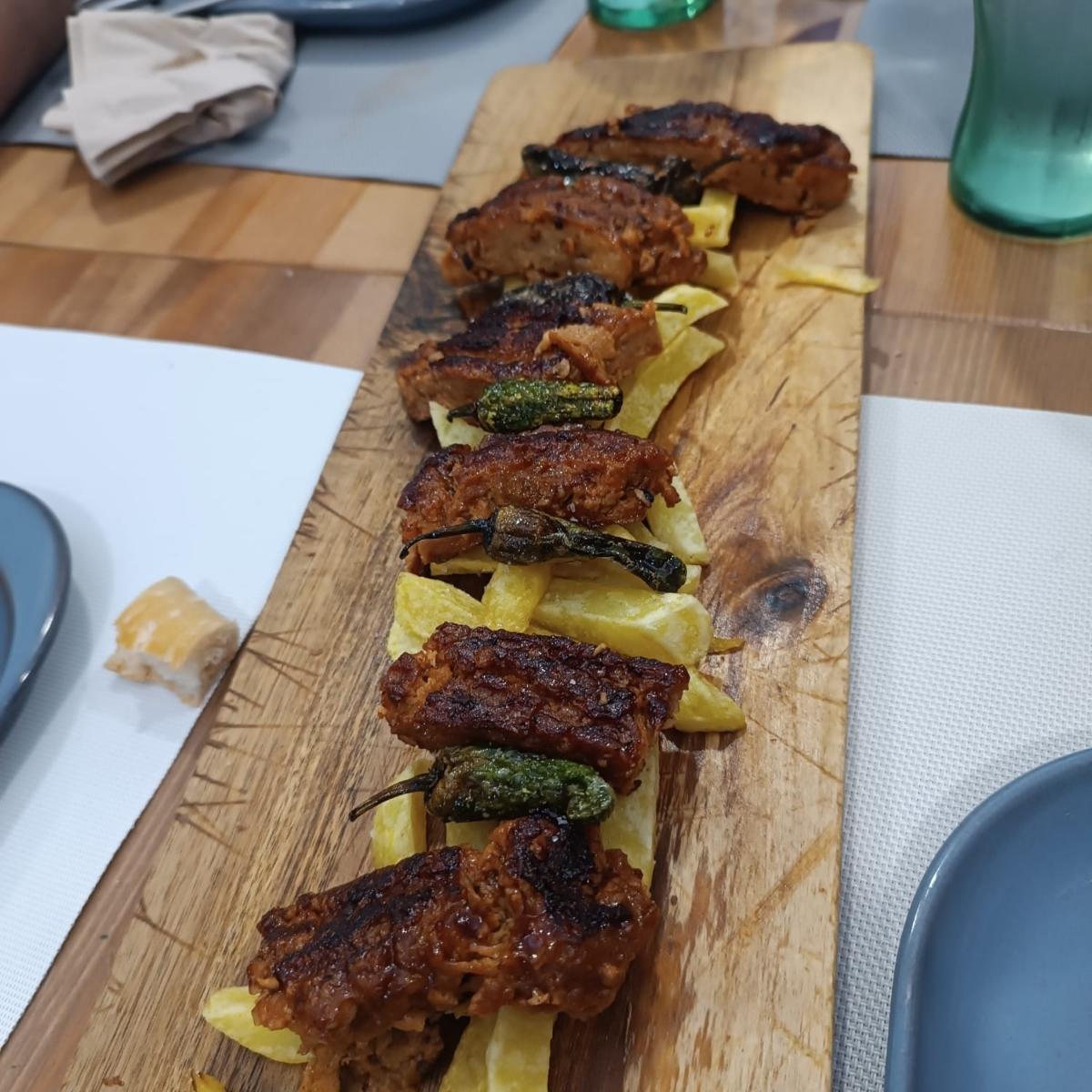 A pesar de que el sabor no estaba nada mal, no hubiera escogido ese tipo de seitan para las costillas... Demasiado chicloso...