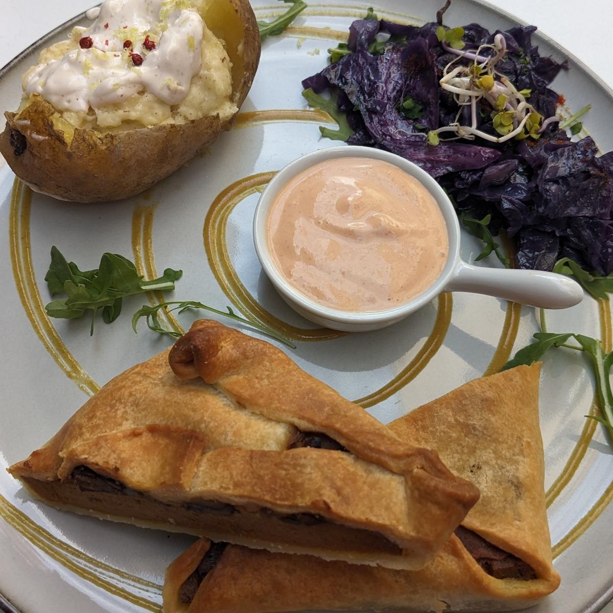 La mia recensione sarà più breve del nome del piatto... Che dire, è buono! La patata aveva una salsina al gusto formaggio davvero golosa,