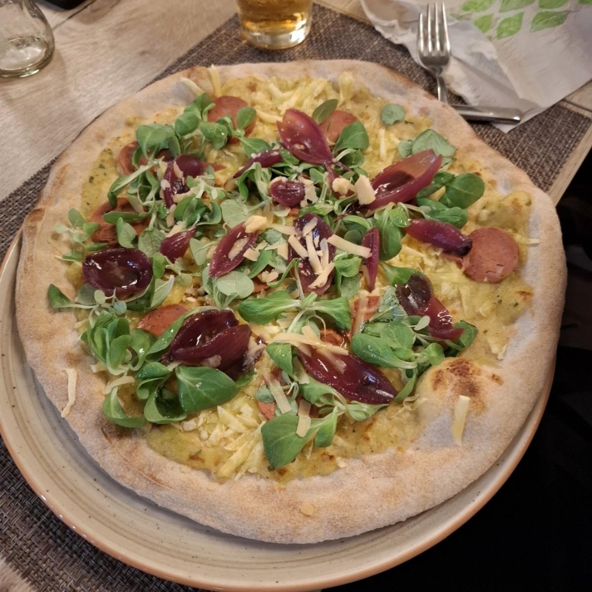Ogni settimana da Controvento viene proposta una pizza speciale fuori menù. Questa aveva una base di avocado e zucchine, formaggio e salsiccia vegani, cipolle rosse in agrodolce, songino. L'ho assaggiata volentieri soprattutto per quanto fosse originale, mi è piaciuta abbastanza ma non farei carte false per farla inserire nel menù fisso 🙃 avocado non pervenuto a livello di sapore, la salsiccia in realtà è un wurstel e il formaggio che utilizzano non dà valore aggiunto alla pizza, è di quelli che non te li scolli facilmente dal palato ed ha un sapore troppo accentuato.