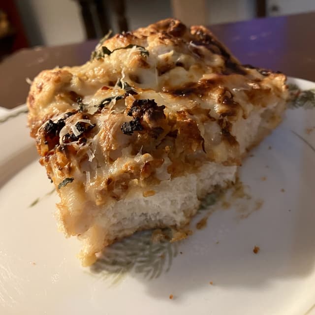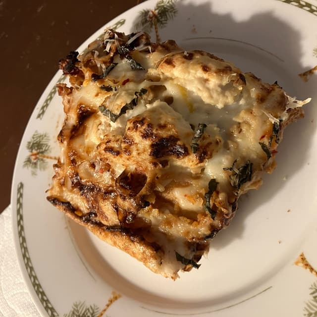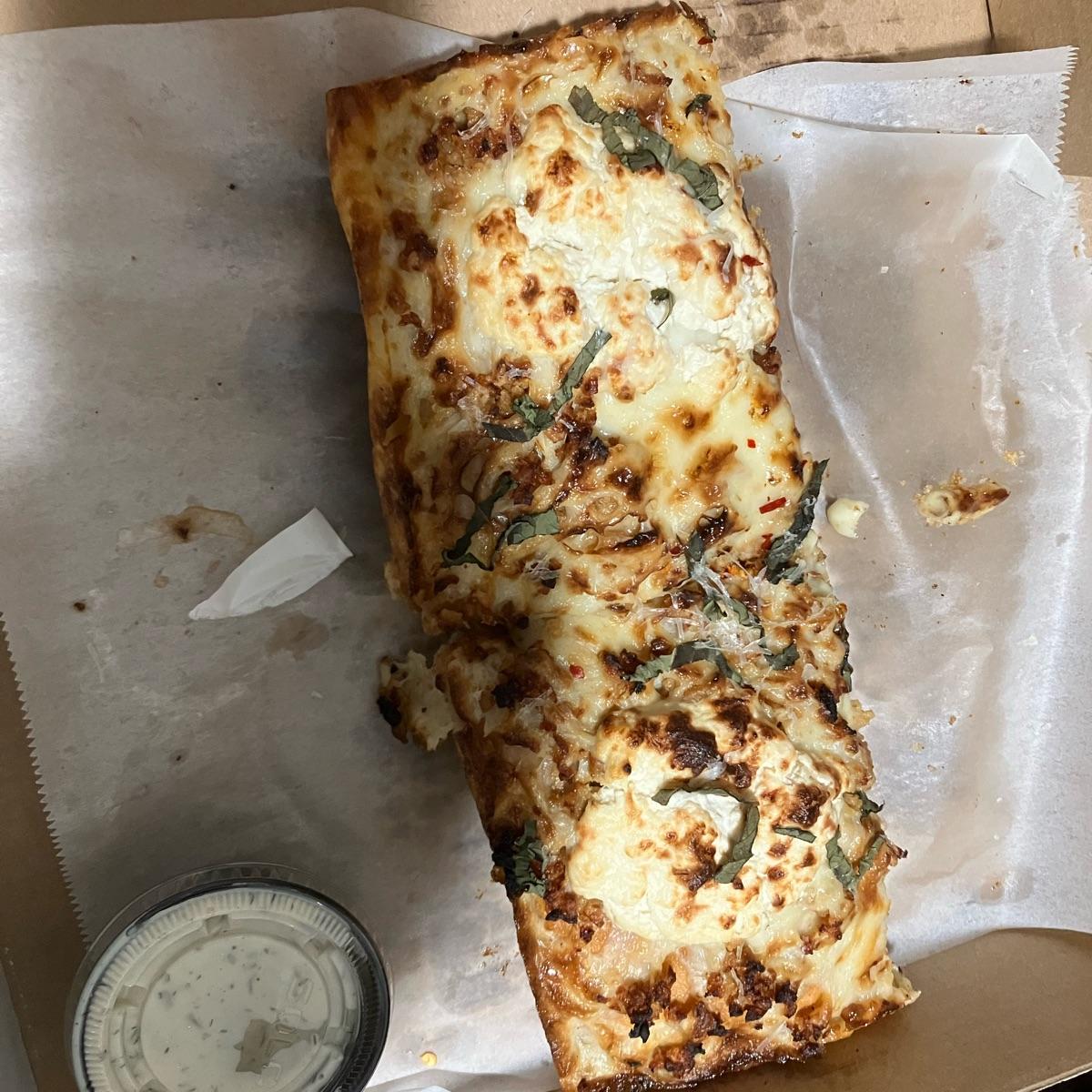 What an awesome Detroit-style pizza! So hearty, filling, and tasty. And of course it’s so awesome to have a 100% vegan pizza joint. The Bianca is loaded with garlic, which I always enjoy. Other ingredients according to the Boxcar website: Mozzarella, Ricotta, Sausage, Fresh Basil, Grated Parmesan, Sea Salt, Red Pepper Flakes. 🧄 🍕