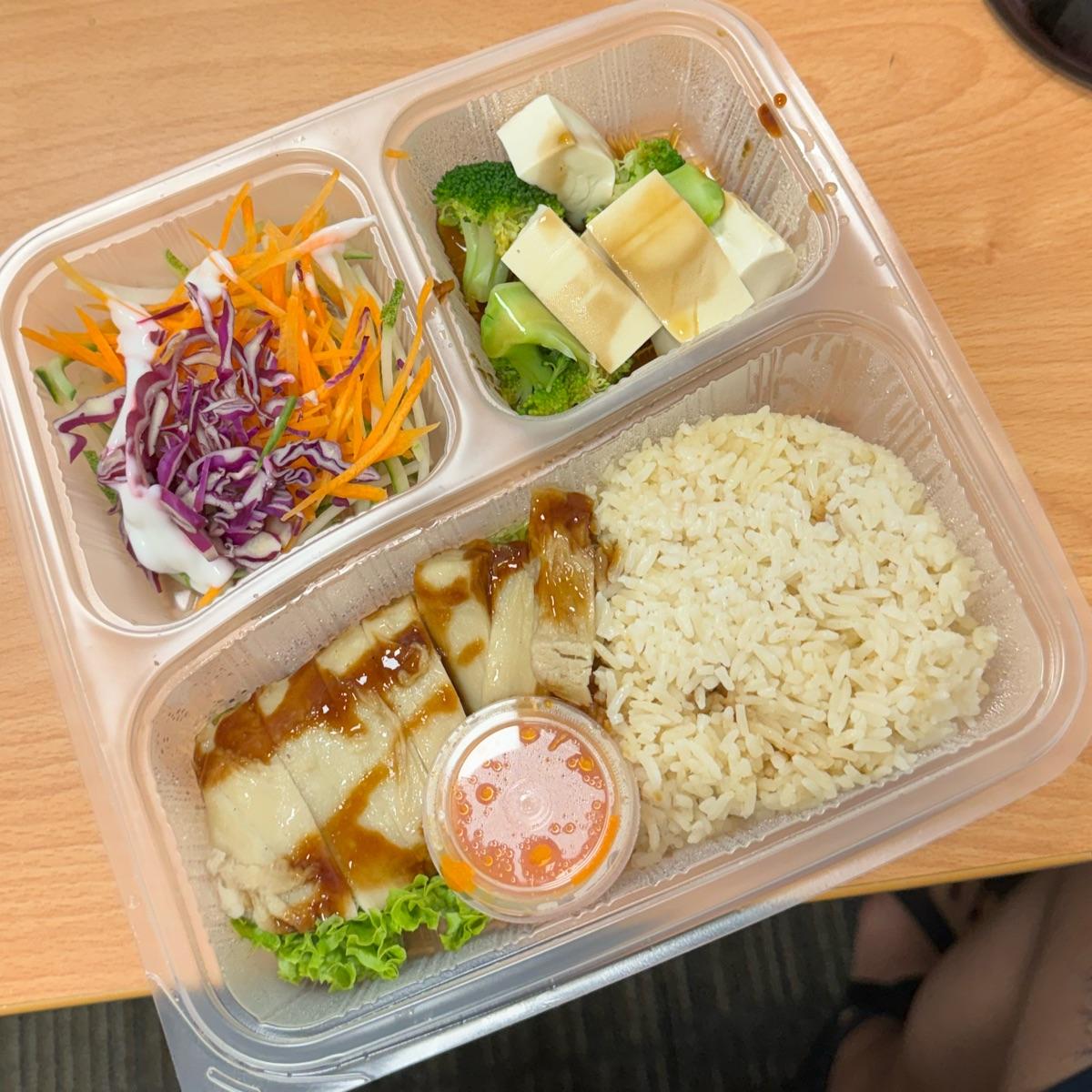I like the taste n texture of the #beancurd #chicken . The #rice is nice n light tasting. Comes with a side #tofu n boiled #brocolli and also a side salad.