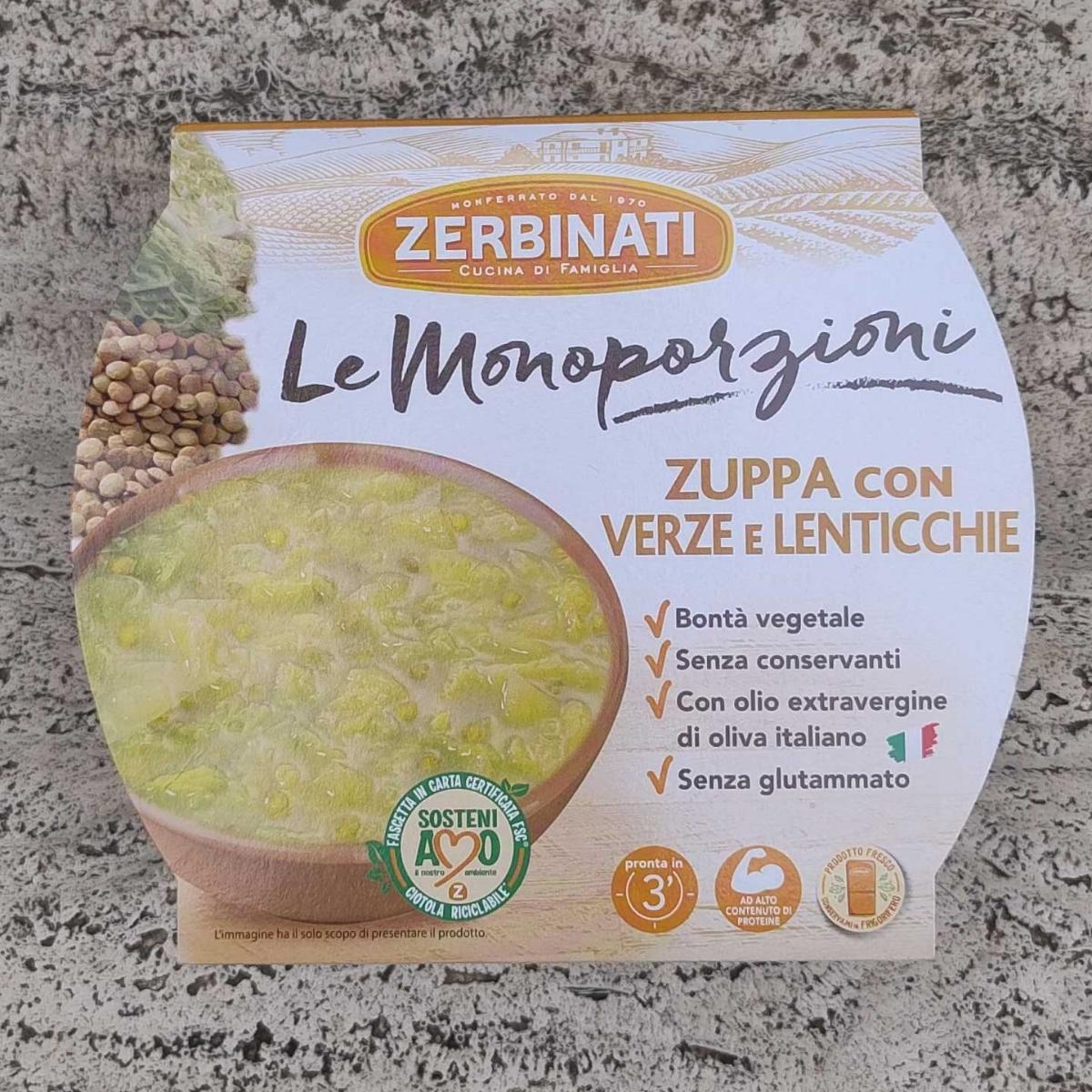Monoporzione di zuppa con verze e lenticchie.La consistenza ricorda più un passato che una zuppa,ma il sapore é molto buono.Pronta in pochi minuti in pentola o microonde.