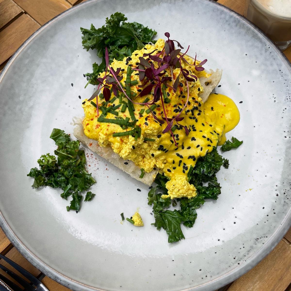This place is often said to have the best vegan brunch in #London but it’s on the opposite side of the city from where I live, so it’s taken me ages to try! The #tofu scramble was served over a big piece of #focaccia with the most gorgeous edible flowers. I liked the scramble my a lot, but there was a strong mustard flavour in the sauce that wasn’t my favourite. Still good. #londoneats #veganisnotscary