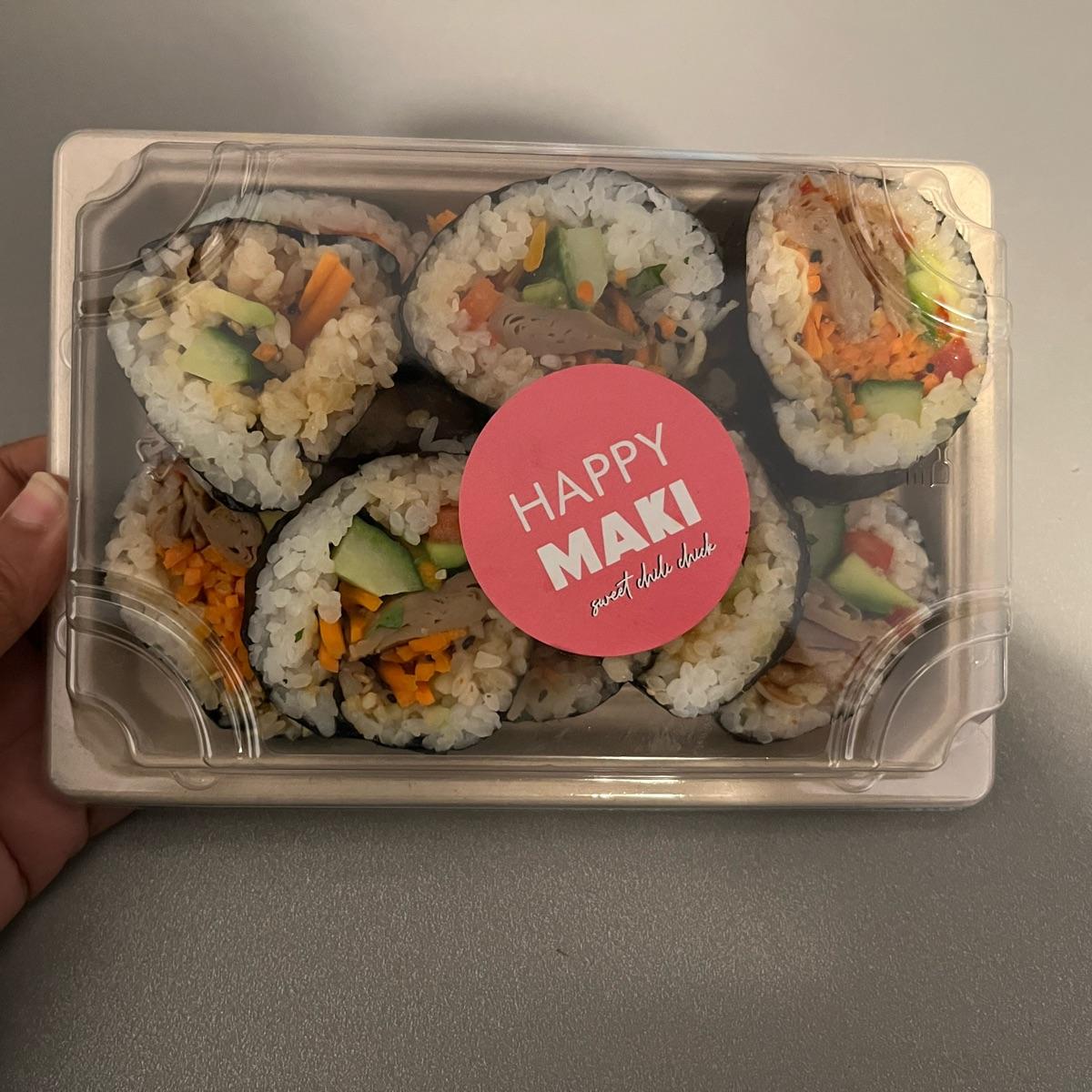 Was craving sushi so my husband popped down to Happy Maki and asked them to slice the burrito like Maki slices to which they kindly obliged! Dipped in some soy sauce and vegan mayo at home and my cravings were more than satisfied! Delicious!