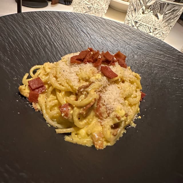 Excelente el sabor de esta pasta carbonara, me recordó realmente al sabor real. El sabor del bacon es increíble Lo recomiendo a todos