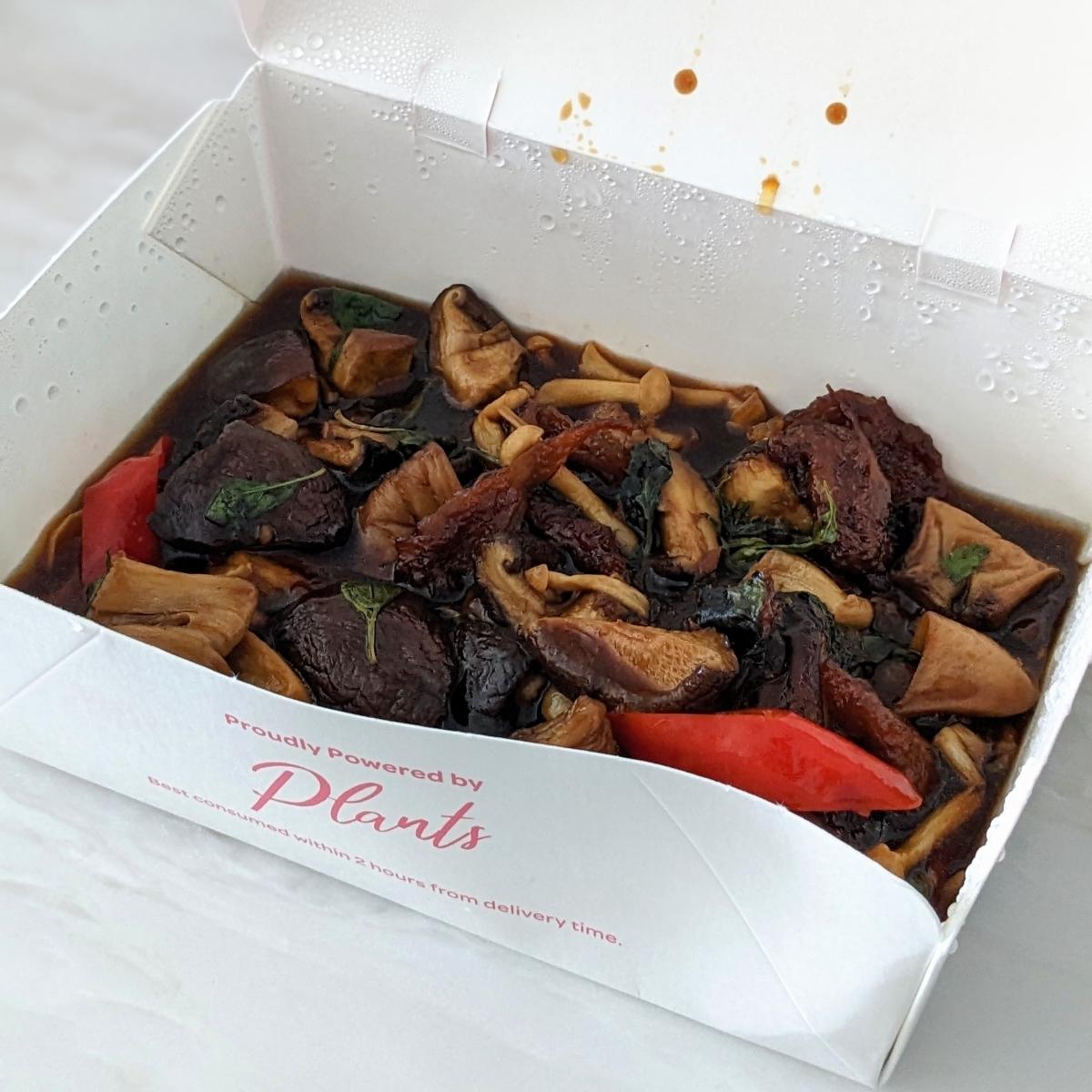 三杯菇 ‘three cup mushroom’, a plant-based take on 三杯鸡 ‘three cup chicken’ - a classic Taiwanese dish with a sauce typically consisting of equal parts soy sauce, sesame oil, and Shaoxing rice wine. 🍗🍄 Being an alcohol-free eatery, I believe the rice wine was replaced with fruit juice and soup stock. In lieu of mock meat, there was a mix of 4 different types of mushrooms - king oyster, shiitake, shimeji, and lion’s mane~ Great sweet-savoury taste and chewy mouthfeel! (Allium-free, $11.90 for Oddle delivery 🚚) #sgvegan #alliumfree #chinesefood #wholefoodplantbased #wfpb #veganisnotscary 👻