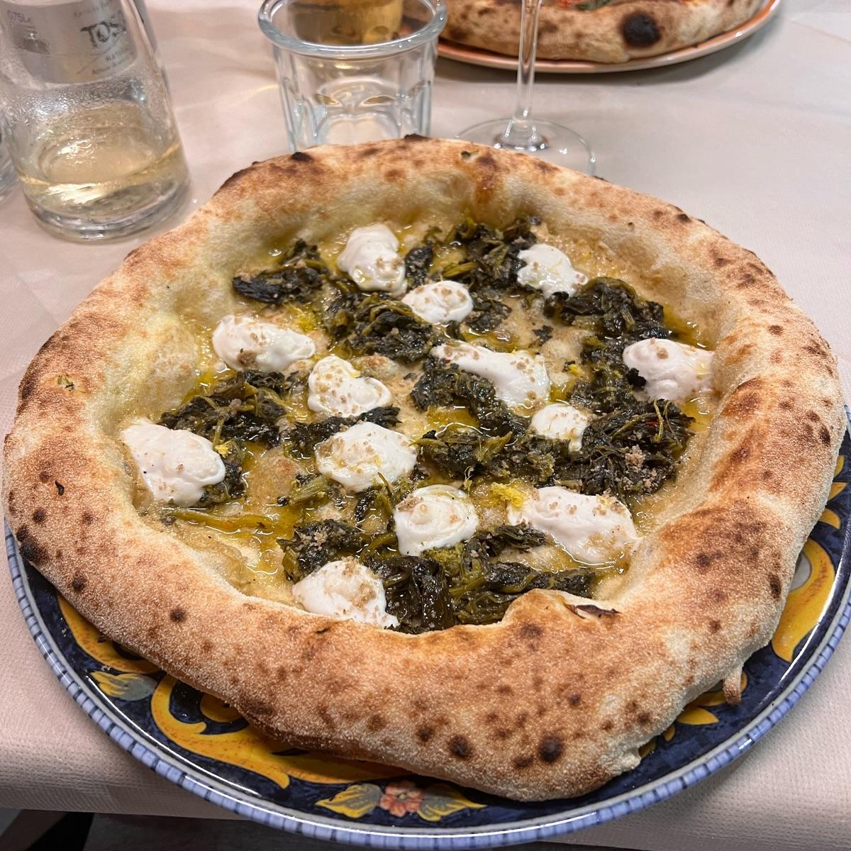 Pizza con cime di rapa, estratto di rosmarino, crema di funghi, zeste di limone e mozzarella #dreamfarm : adoro questa pizzeria, impasto napoletano come piace a me, sapori marcati e sempre diversi.
