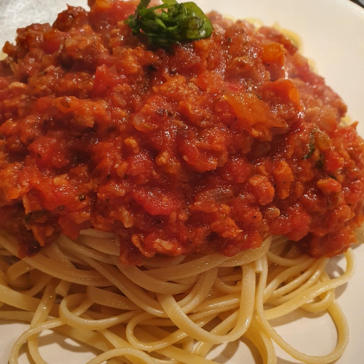 Normally @paniwilson makes homemade sauce from San Marzano tomatoes but a premade sauce comes in handy sometimes! This sauce is a bit too plain and liquidy so we add sauteed onion, garlic, and sometimes mushrooms, peppers, or spinach, or a vegan ground beef and fresh herbs.