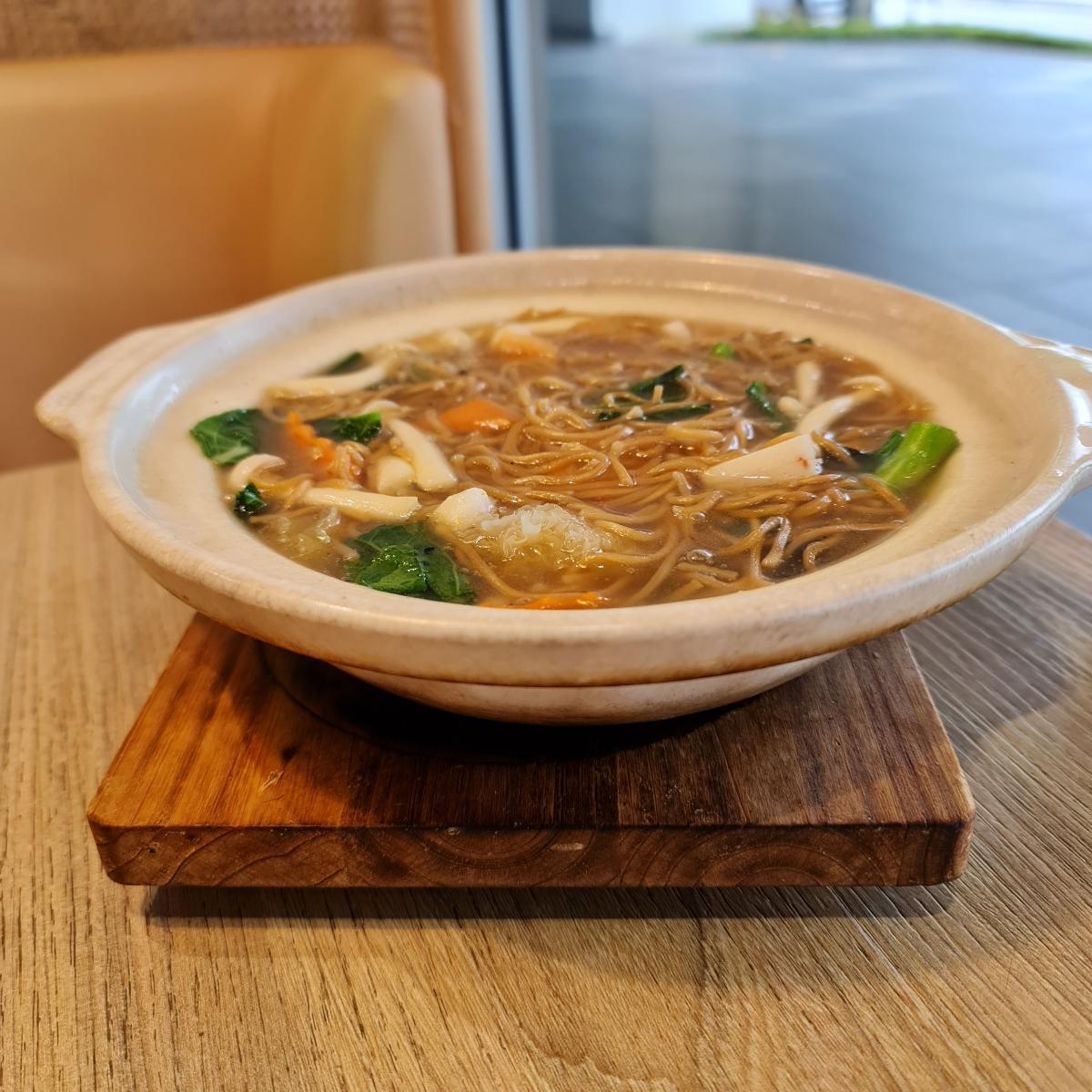 No moon but light enough with vegan yeemee (eggfree #noodles) in #claypot with mock #prawns, #fungi and vegetables. Tad overpriced for that tiny, shallow portion. What more nothing to replace luna