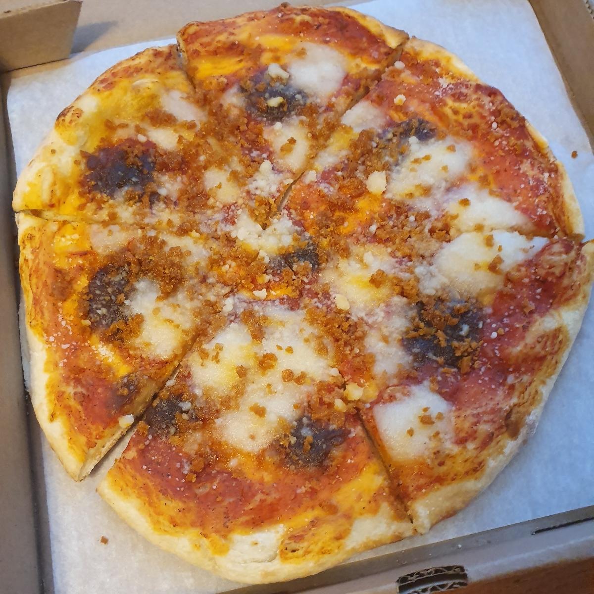 I love a sweet and savory combination! This #pizza has vegan #bacon and vegan hot honey. It was so flavorful and satisfying. We have loved everything we have tried here!