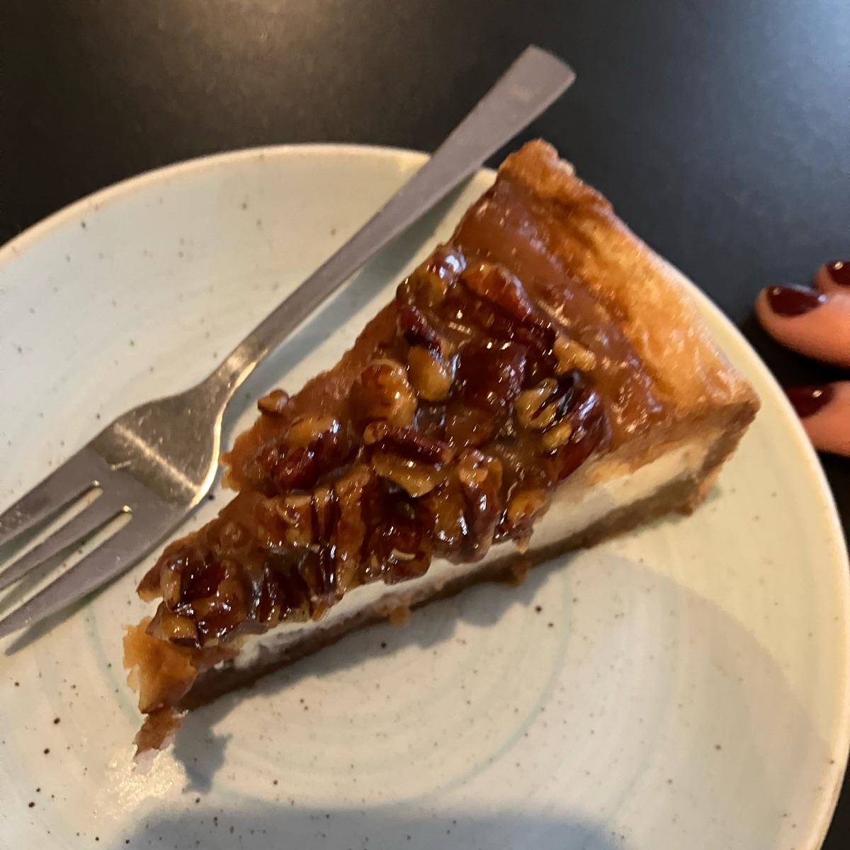 Cheesecake vegan con noci pecan ✨ deliziosa, dolce il giusto, consistenza cremosa, fresca e super gradevole. Accompagnata da chai latte di avena è stata una colazione da favola.