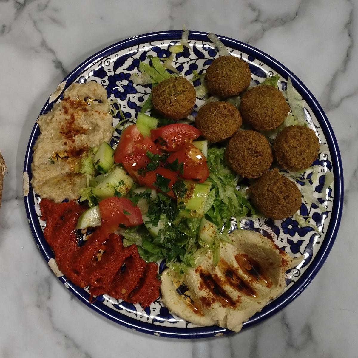 Buonissimo piatto falafel con insalata e salse varie (hummus, arisa e una alle melanzane), tra i falafel Migliori di milano senza dubbio. 10 euro!