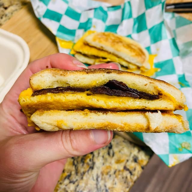 I LOVE the bacon that they use on this. It’s super crunchy and has a great meaty flavor. They sell the bacon in 1/2lb and 1lb bags to go and I’m seriously considering picking one up next time. The breakfast sandwich was on the small side, but that’s expected since it was on their cheaper value menu, and the hash brown it comes with on the side is a nice addition. The English muffin and egg were both fluffy, cheese was melty, and bacon was crispy. Perfect breakfast! #breakfast #breakfastsandwich