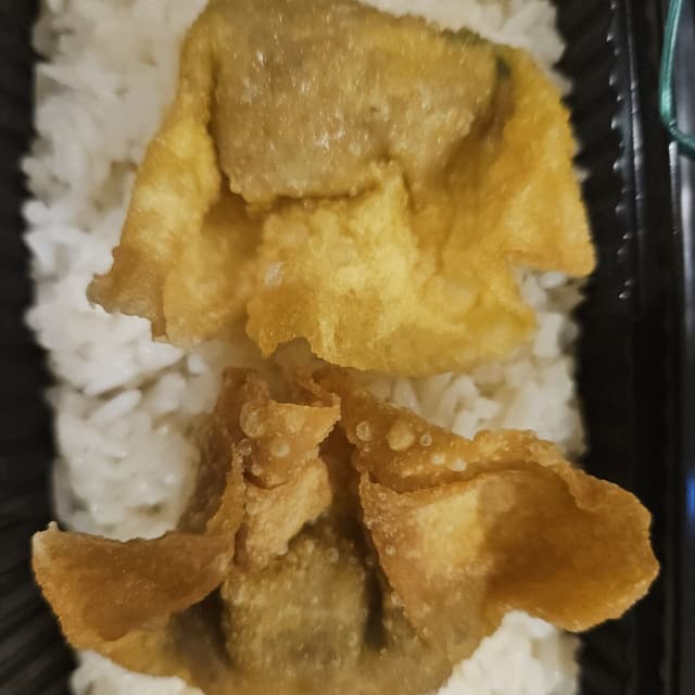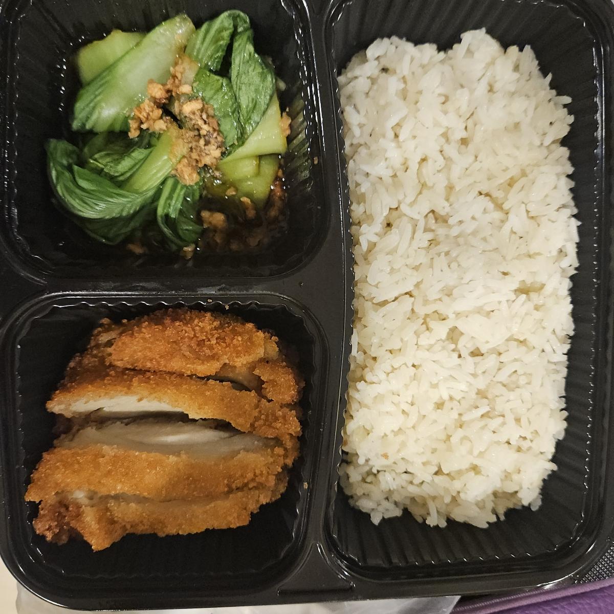 Had this last week and it was pretty good! The rice is fragrant like the chicken rice kind and the "chicken" was good but a little .. doughy almost? Felt a little like chewing on uncooked dough but it was still yummy regardless. also got the fried wantons which were so good! They tasted eggy which scared me a bit but definitely no eggs! Also had the thai basil rice another day which i didnt take a picture of but i felt it wasn't as good as this one~