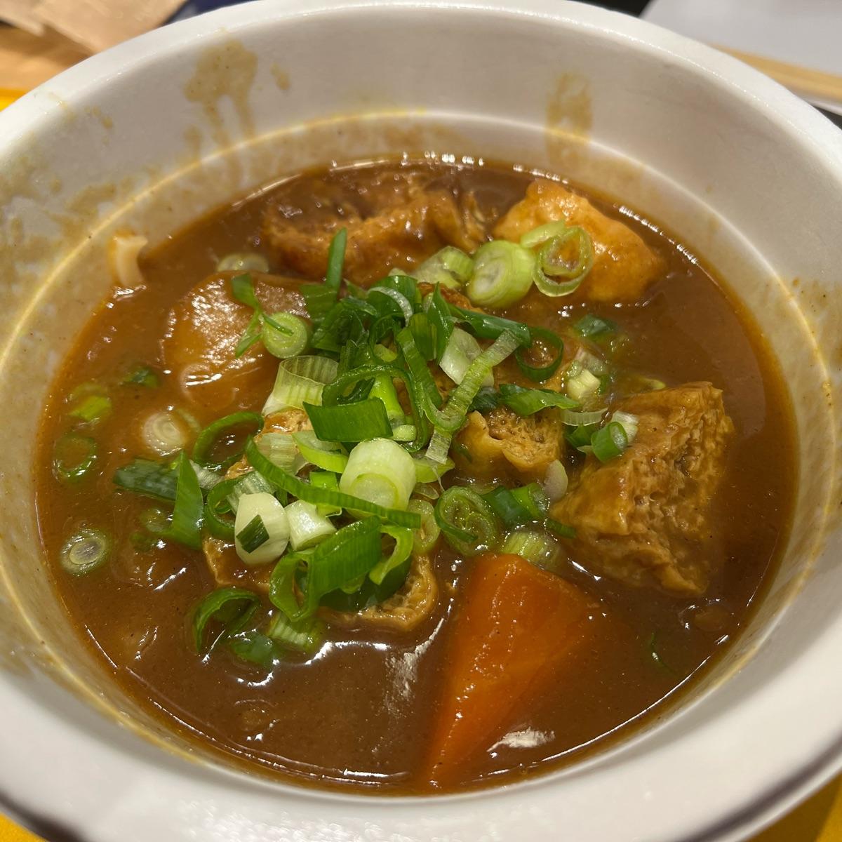 🇯🇵 So exciting! A new #japanese 🥢restaurant opened in Wimbledon yesterday with a massive🌱 #veganmenu. It’s all 50% off for the first three days too. It’s a chain from Japan of #udon #noodles 🍜which they specialise in. I tried the🫛 #tofu #curry 🥘with chunks of potato 🥔and carrot 🥕and spring onions on top. It was filling and served in a disposable paper bowl as it’s a #fastfood or #takeaway place too. This is very nostalgic for me and reminds me of traditional Japanese curry which is not so spicy but warming and hearty. I find it super tough to eat udon noodles with this as they are slippery and curry splashes everywhere covering your clothes and face argh. 🤦♀️Rice would be better but as they specialise in noodles I wanted noodles. There was a huge line out the door here for their special offer. I’m going back tonight to try more and console myself with the election results. I’m so sorry to see that news. Heartbreaking. 💔