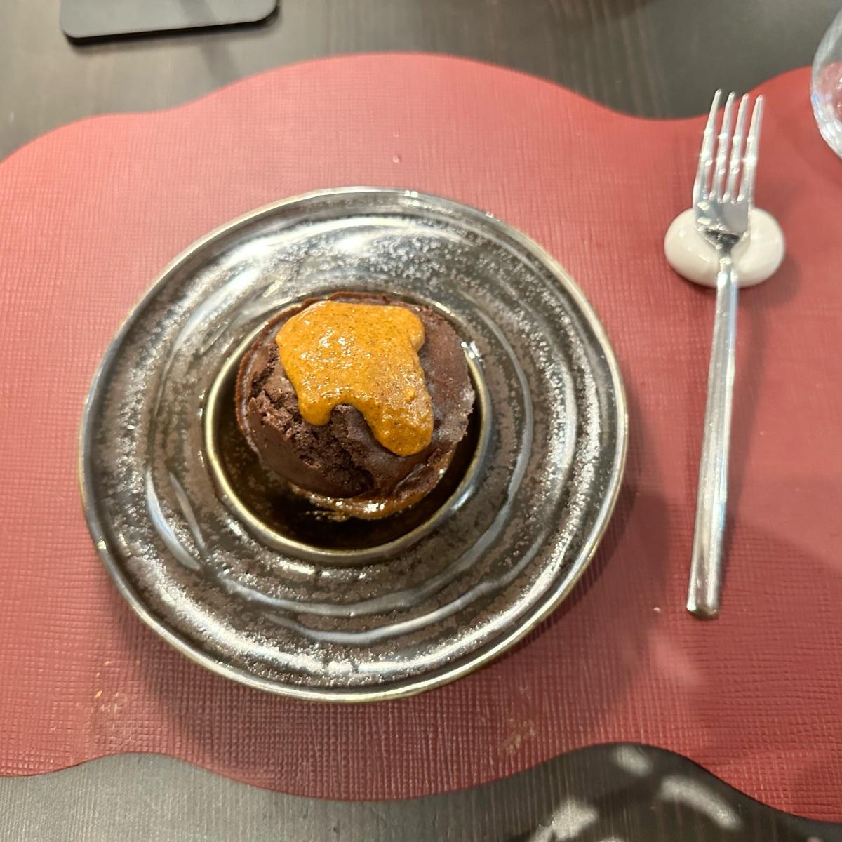 Avevo letto nelle recensioni che il tortino non era buono. Ho voluto provare lo stesso. Effettivamente la bravura dello chef nei dolci viene a mancare. Il tortino è risultato pastoso e troppo secco. Il topping invece mi è piaciuto tanto, veramente delizioso.