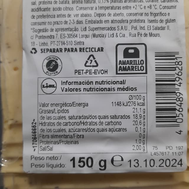 They are nutritionally abysmal as are most vegan cheeses I have seen - high in saturated fat and salt, lacking in any protein. But as these are so sparingly offered at Lidl, it isn't too much of a problem. If they do appear on the shelves again, into my cart they will go! Priced at 2,39€ for the 150g package.