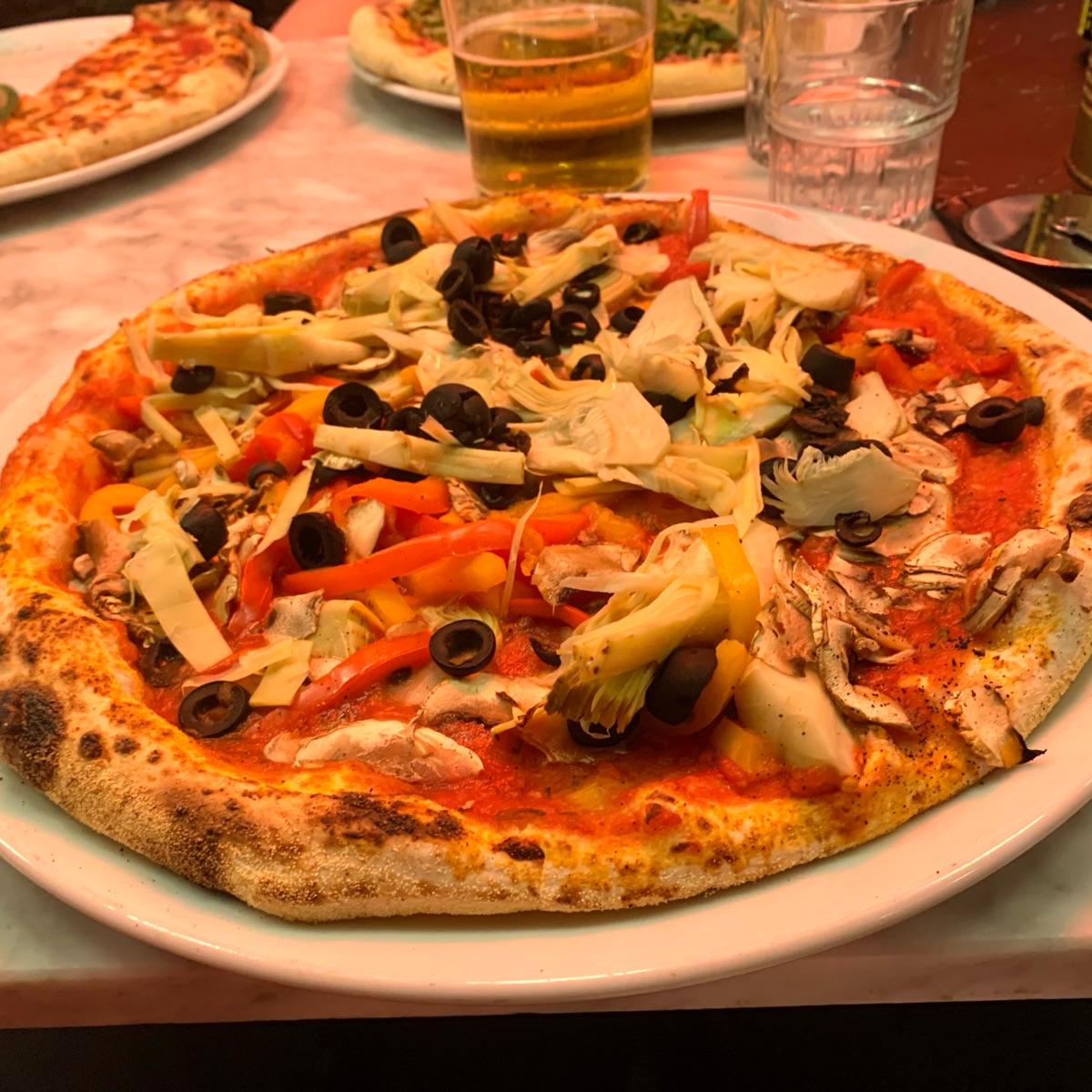 This was great! £13.95 for as many toppings as you want, with lots of vegan options! I didn’t get vegan cheese but it was available, along with vegan meat alternatives and lots of veggies. I got extra artichoke because I love artichoke, and also olives, mushrooms and pepper. All of their pizza bases are sourdough which was delicious, and you could watch them preparing them in their pizza oven. Would 100% go again!