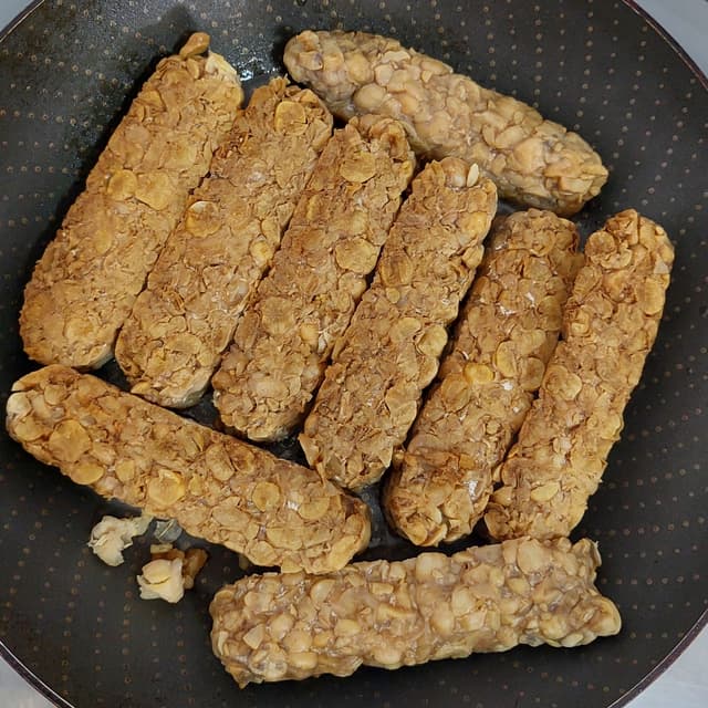 Definitivamente não é o meu tempê favorito. Tem uma textura esquisita, o gosto fica mais ou menos mesmo marinando, e não é dos mais proteicos. Nem se compara ao tempê de soja. Não é ruim, dá pra comer, mas não pretendo comprar novamente. #tempeh #tempe #graodebico #munalimentos #produtovegano #brasilvegano #veganin2024