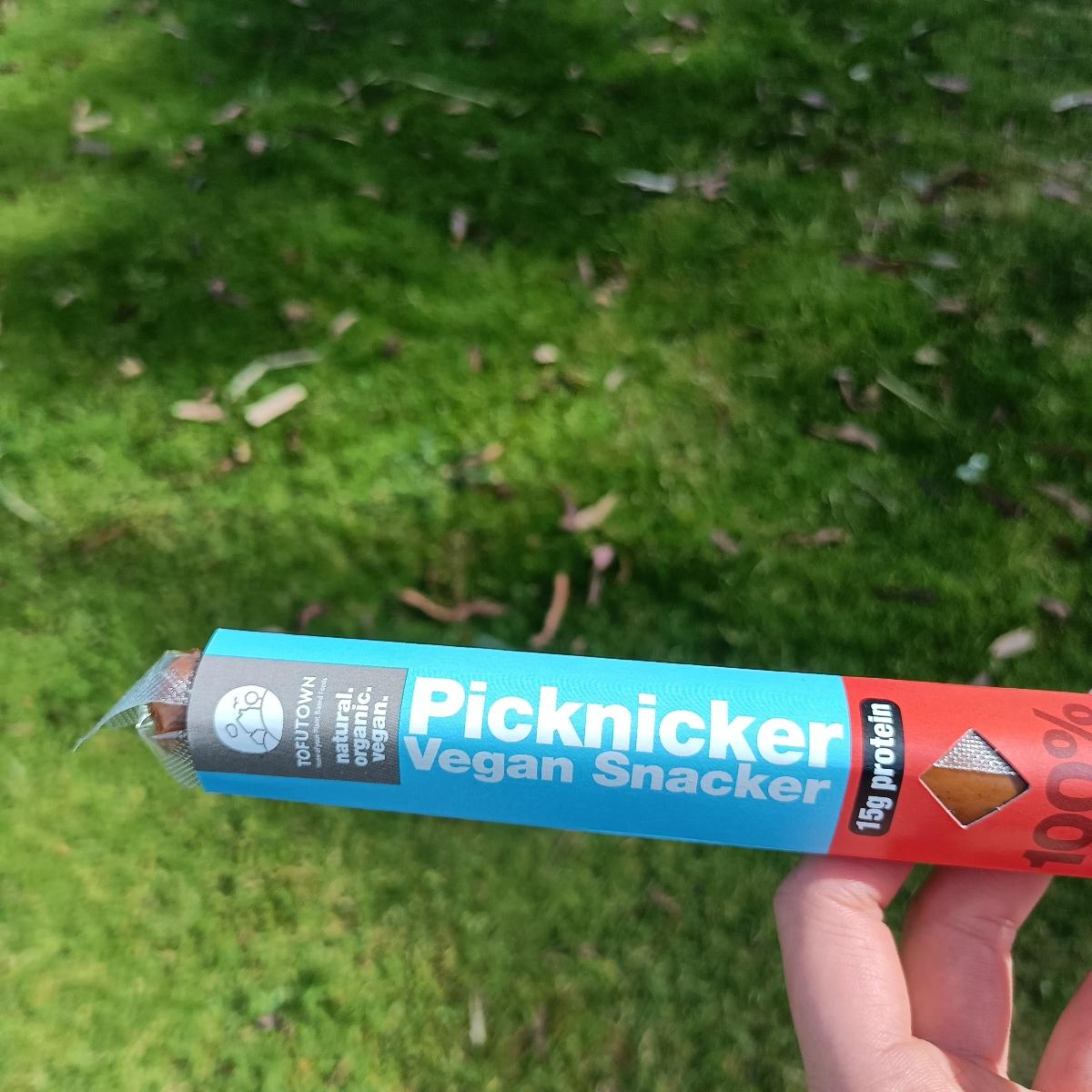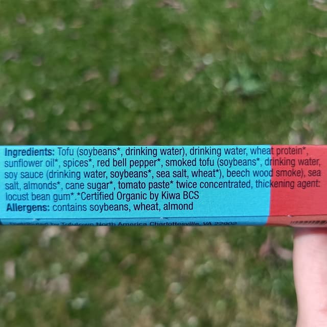 An entire, single, smoky tofu sausage encased in plastic, making it slightly more socially acceptable to walk around in public eating just a sausage in hand. 🤣 15g of protein and not much of other macronutrients. #tofu #vegansausage #protein #organic