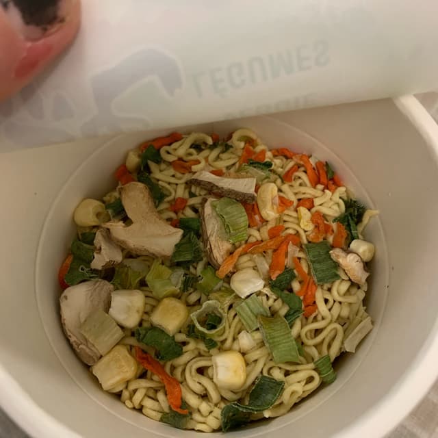 Il y a plein de légumes. La texture des nouilles est incroyable; j’aime beaucoup et ce n’est pas trop épicé.. c’est délicieux!