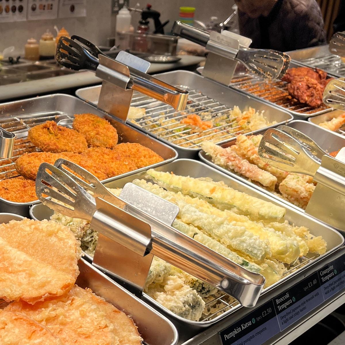 🇯🇵 The #courgettes #tempura was nice. My partner thought it wasn’t seasoned enough. I’m just noticing that their menu prices are slightly different to what was written in shop, argh, sorry. I was trying everything here while it was 50% off for their first few days. You self serve the tempura you’d like and pay at the till. #veganproud #veganlondon #londoneats #japanese
