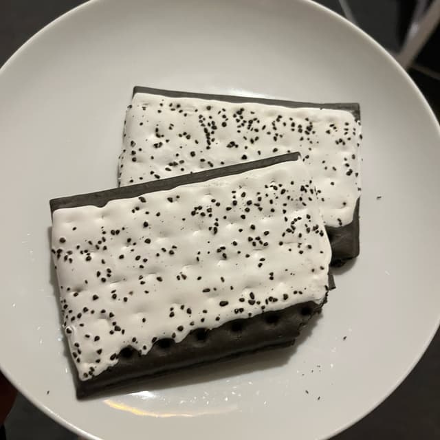 Finally tried my first “pop tart”, I’ve heard about these for a while and finally got a box yesterday at my Aldi. Growing up as a veggie kid, I’ve always dreamed of eating a pop tart. Because I’ve never tasted the original I can’t compare. The heating instructions were not clear so I toasted them for around a minute, I probably could have done it longer to heat the inside. Anyway i thought it was pretty good, very sweet, chocolatey and crispy!