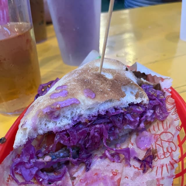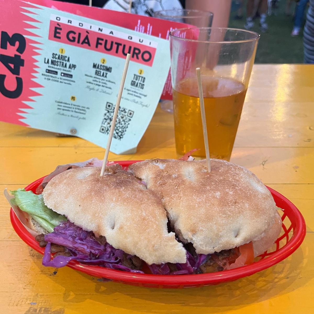Panfocaccia con vegan kebab planted cavolo cappuccio insalata e pomodori. Semplice ma soddisfacente e buono. Meglio del burger a mio avviso