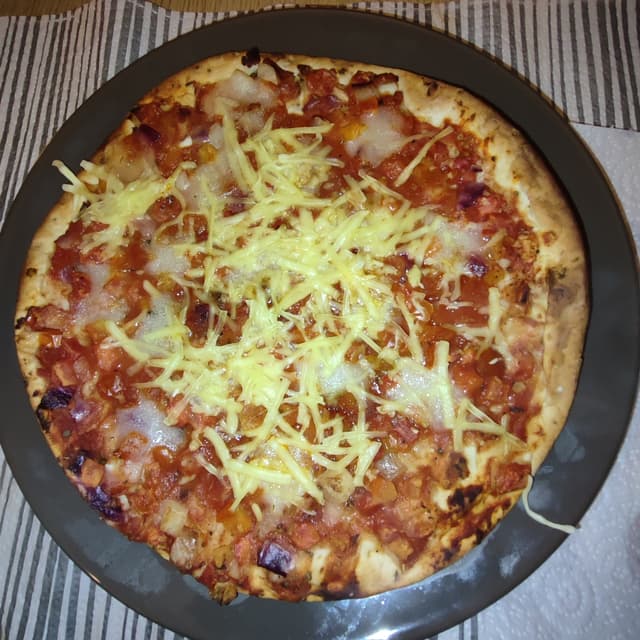 L'ho cotta in forno per 20-25 minuti, ho aggiunto formaggio vegano per pizzađ e un po' di peperoncinođśď¸.