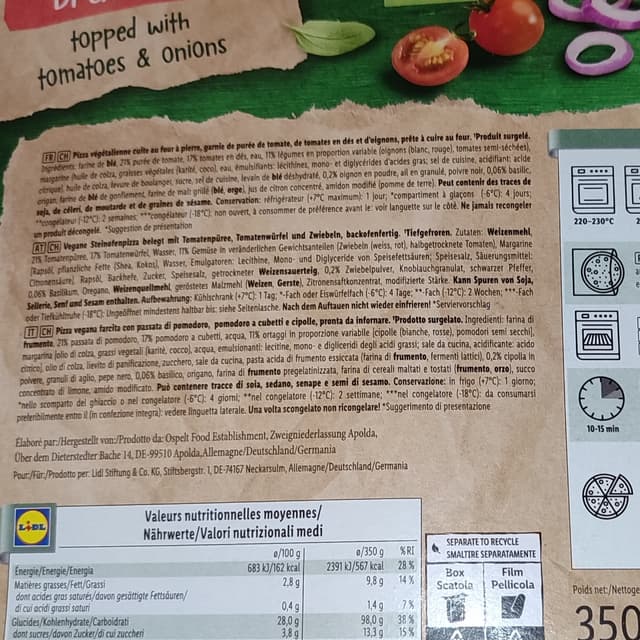 Vegan pizza bruschetta Vemondo con pomodoro, cipollađ§