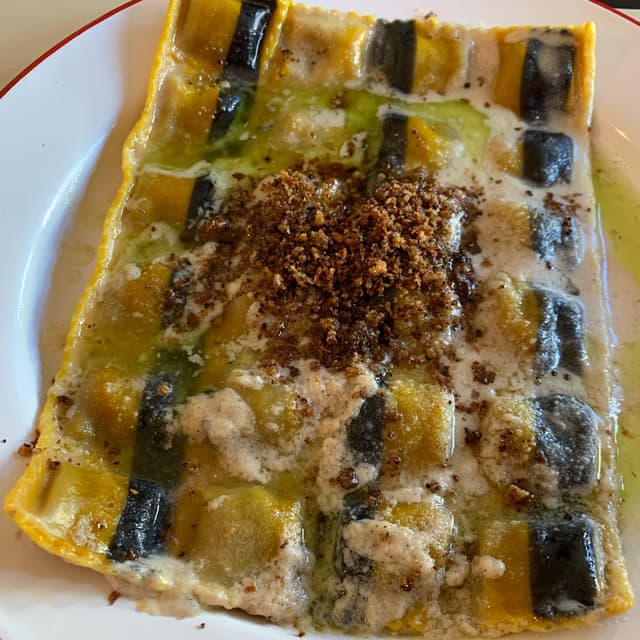 Esa vez no fue con pesto. Ademas ravioles y arancini. Delicioso todo! Enamorada de este lugar. El vermut y el sodeado del día también son buenísimos