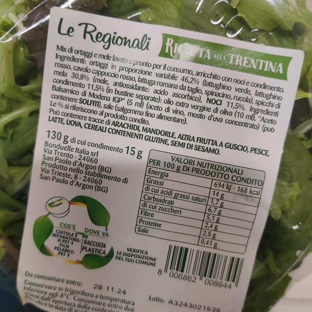 Assolutamente insoddisfacente come pranzo veloce. Pochissima mela e noci, rimane una fame tremenda 😰 l'insalata oltretutto è piuttosto dura e insapore