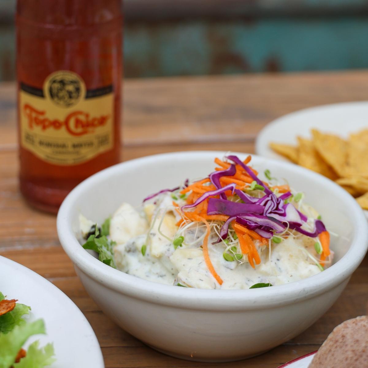 Guess what? I'm going to be doing some work for Portia's Clintonville Natural Foods Store 📷 which means more Portia's food!! YES! Portia's has some of my favorite healthy food in Columbus. It's super healthy, #glutenfree and #organic. Most of the produce used is also grown locally, which is an added bonus. This was a good $4 side dish. It has potatoes smothered in a housemade creamy dressing with shaved carrots, cabbage and local sprouts. It was really flavorful. I like potato salad that has a creamyness but still more on the vinegarette side. The added veggies were also a nice touch and added some crunch to the dish.