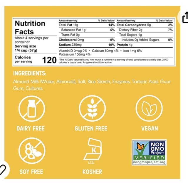 I’d never been a fan of ricotta prior to becoming vegan, and at first glance, this product seemed pricey at $9.99 per container. However, a little goes a long way. A heaping teaspoon mixed into a bowl of pasta adds just the right amount of creaminess. Also, I could not discern any difference between their whipped ricotta & their non-whipped version. A final note, I don’t like this cheese plain/on its own, as it’s quite bland.