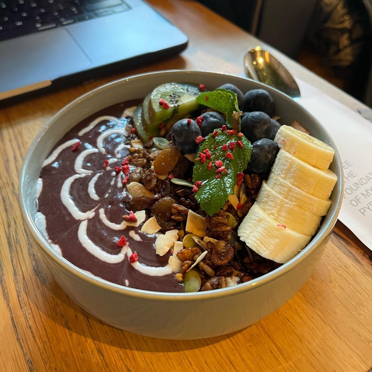 It tastes amazing! And they change the fruit combination based on the season. It is a huge bowl so it is kind of worth the price