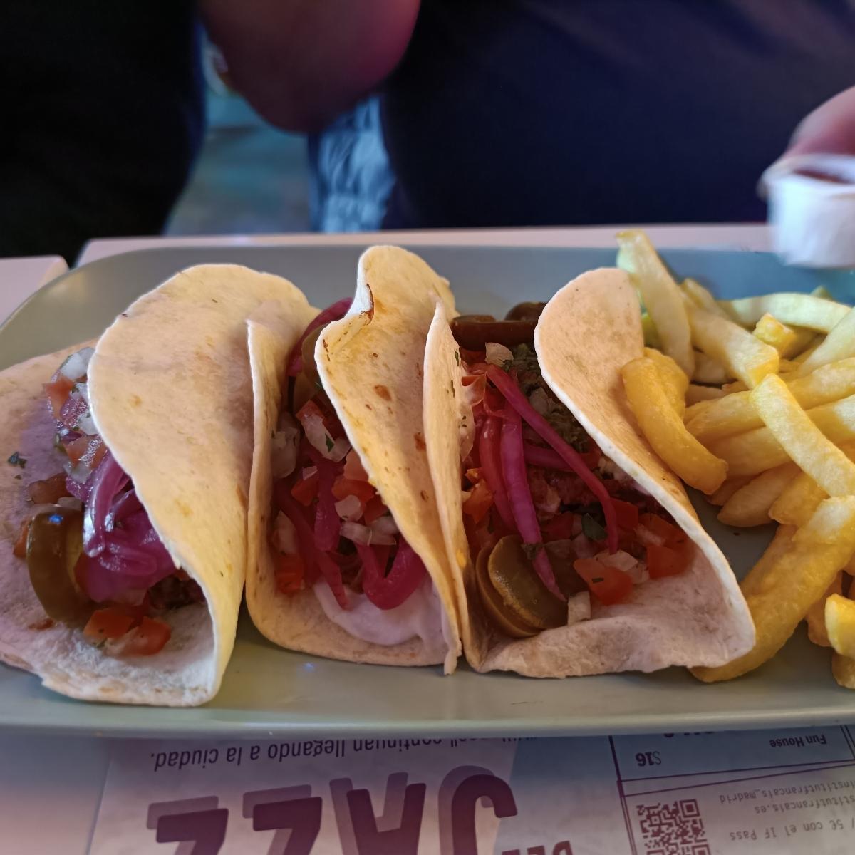 Me gusta absolutamente todo lo que ponen en este sitio y los tacos no son una excepción. Me encanta que los acompañen de patatas fritas.