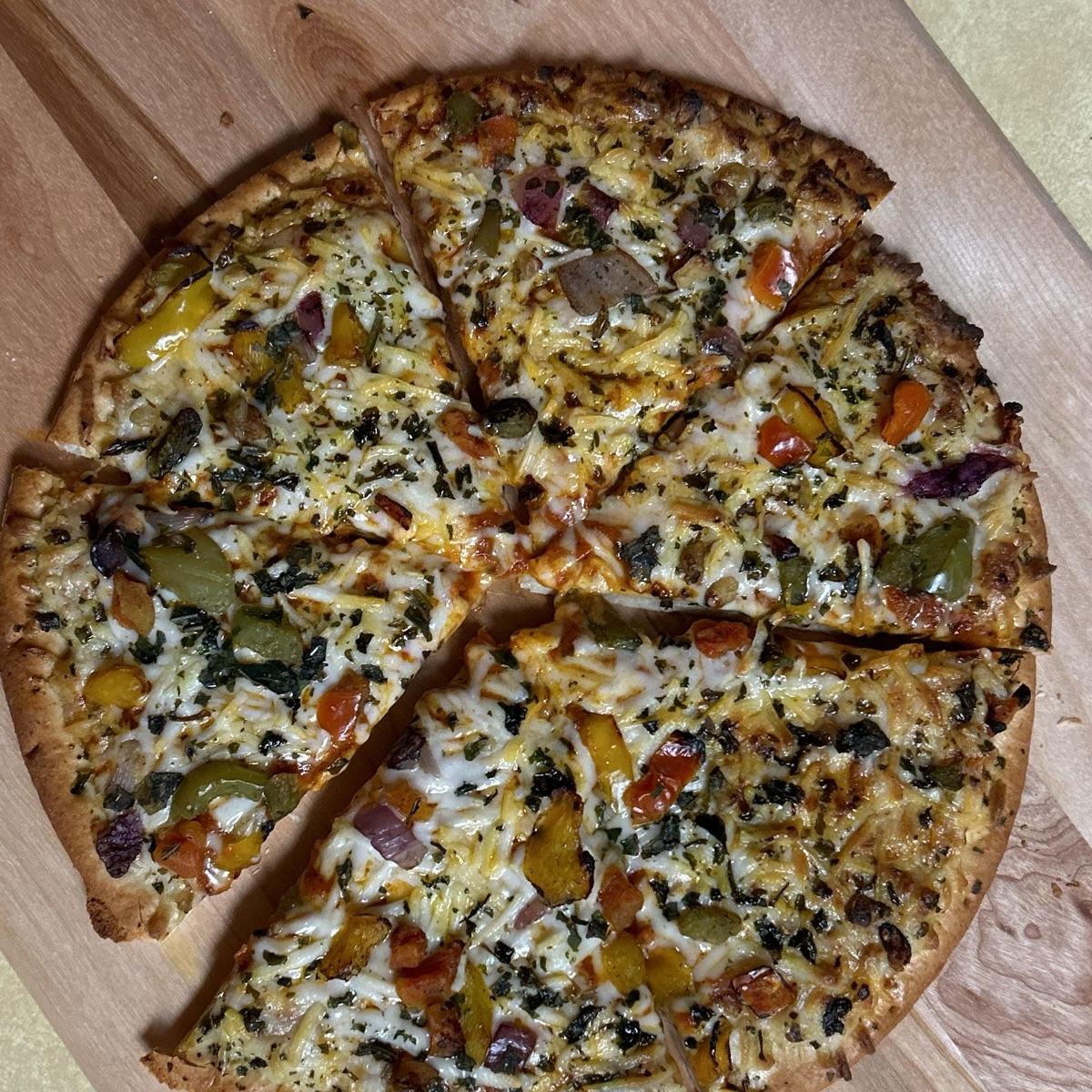 This is also gluten free with tapioca, rice, potato, chickpea crust. Over a thousand calories per pizza so good for sharing… or not! #nongmo