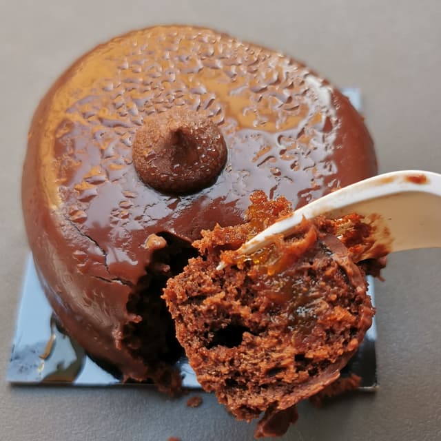 Finalmente una sacher fatta a regola d'arte: farcita a dovere, non asciutta e perfettamente equilibrata nel contrasto tra cioccolato e confettura di albicocca.