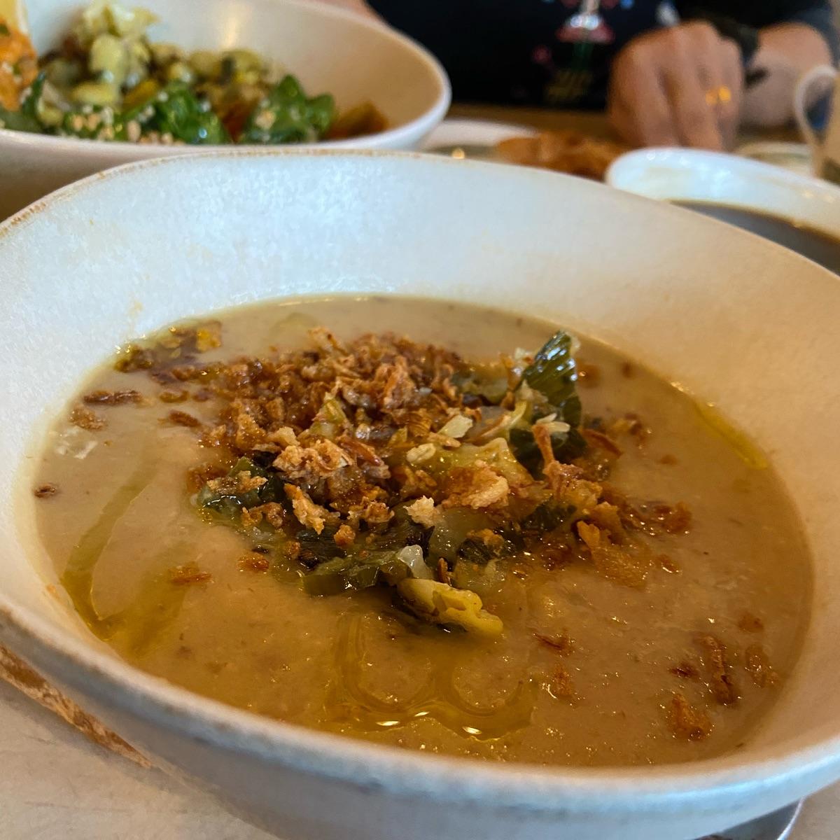 Re-review but not quite. The Soup on this occasion was leek and potato, topped with crispy onions. It was exactly what i needed on this cold day. Rich and creamy and so full of flavour and tastes like a comforting hug. A large portion as well, great for sharesies, or if you’re after a large serving of warmth and goodness. Served with toasted sourdough as well. #soupseason #veggiesoup #potato #leek #leekpotatosoup