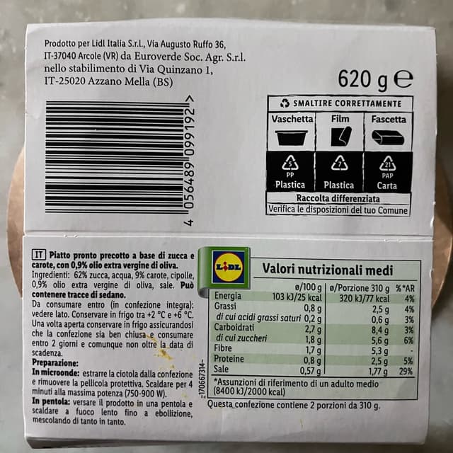 The Vellutata di Zucca e Carote is a simple and healthy soup made with butternut squash and carrots. It is easy to prepare and ready to serve in no time. This soup is packed with beta carotene-rich butternut squash and carrots, making it a nutritious option. Customers enjoy its rich flavor and creamy texture, making it a perfect meal for a chilly day. It can be served with crusty bread or a mix of cereals and rice for a satisfying and filling meal.