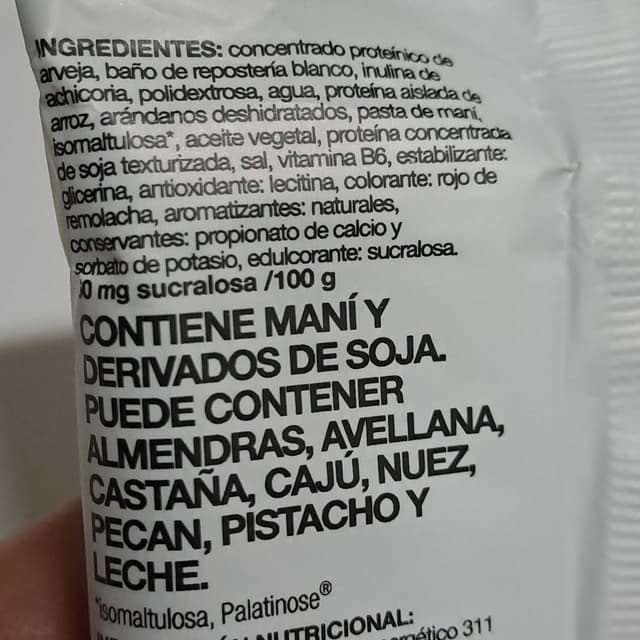 El aroma que tiene me hizo acordar a las barritas de cereales arcor de frutilla y yogur. Tiene baño repostero tipo chocolate blanco, eso lo diferencia de los otros sabores. Tiene sabor a frutos rojos, es bastante dulce.