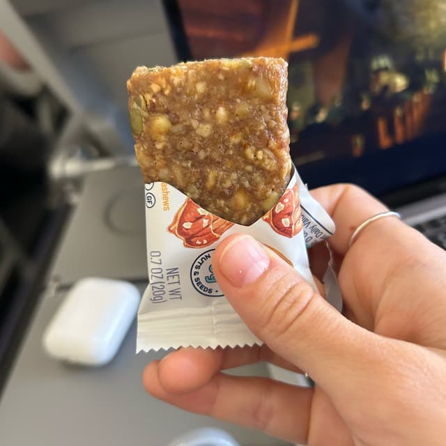 This was a free snack on my Porter airlines flight! Impressed that they had a vegan sweet option! It was pretty nice, very nutty and chewy and did have that sweet maple flavour.